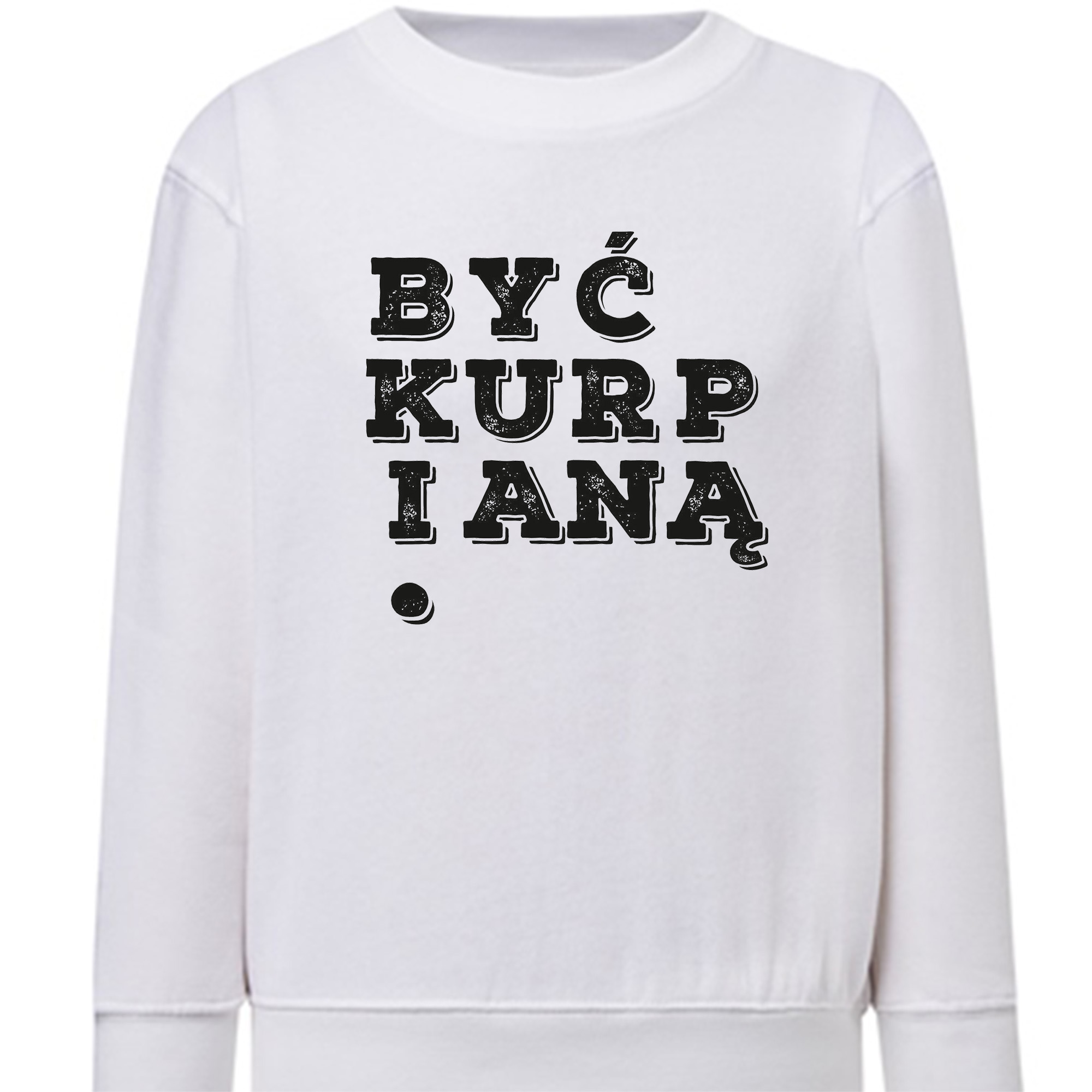 Odważny, graficzny napis „Być Kurpianą” symbolizuje dumę z pochodzenia i siłę kurpiowskiej tożsamości – prostą, szczerą i dumną.