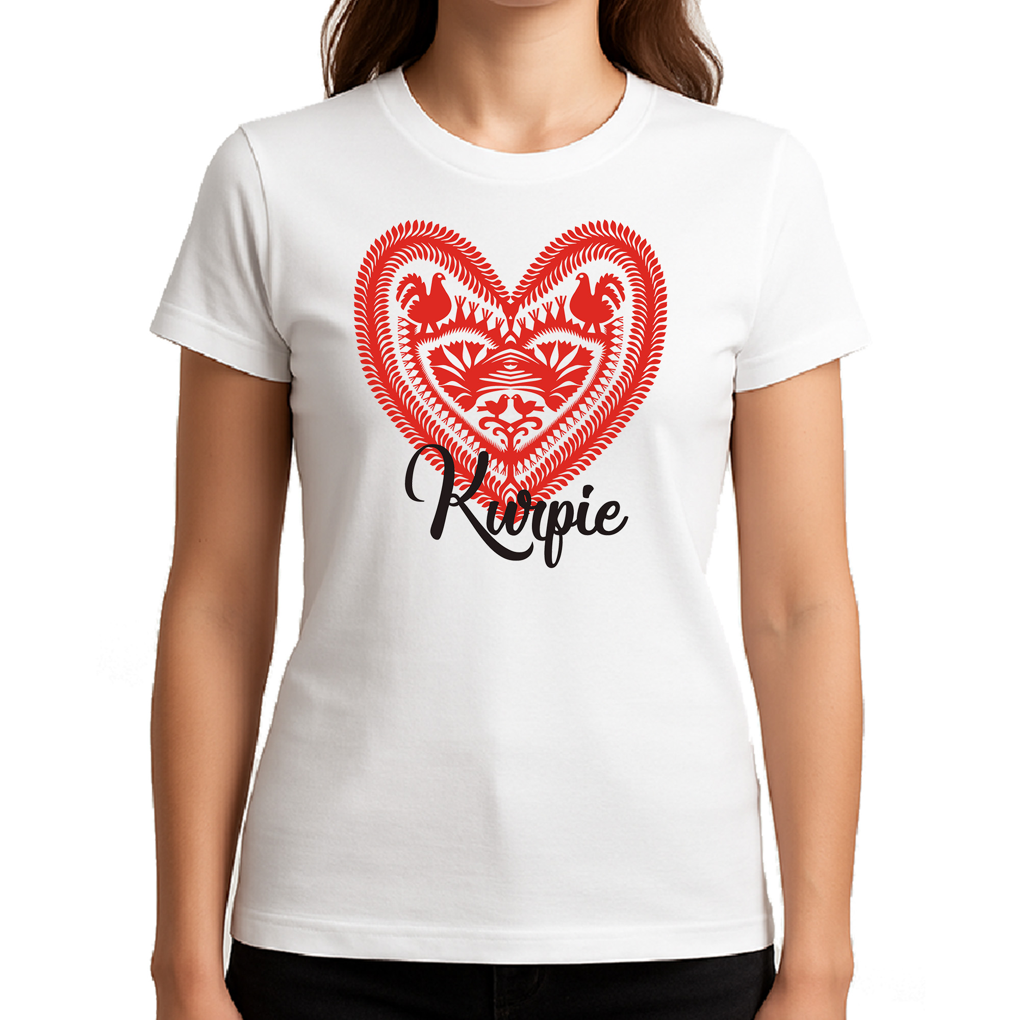 Koszulka damska Serce z Kurpiowskiej Wycinanki