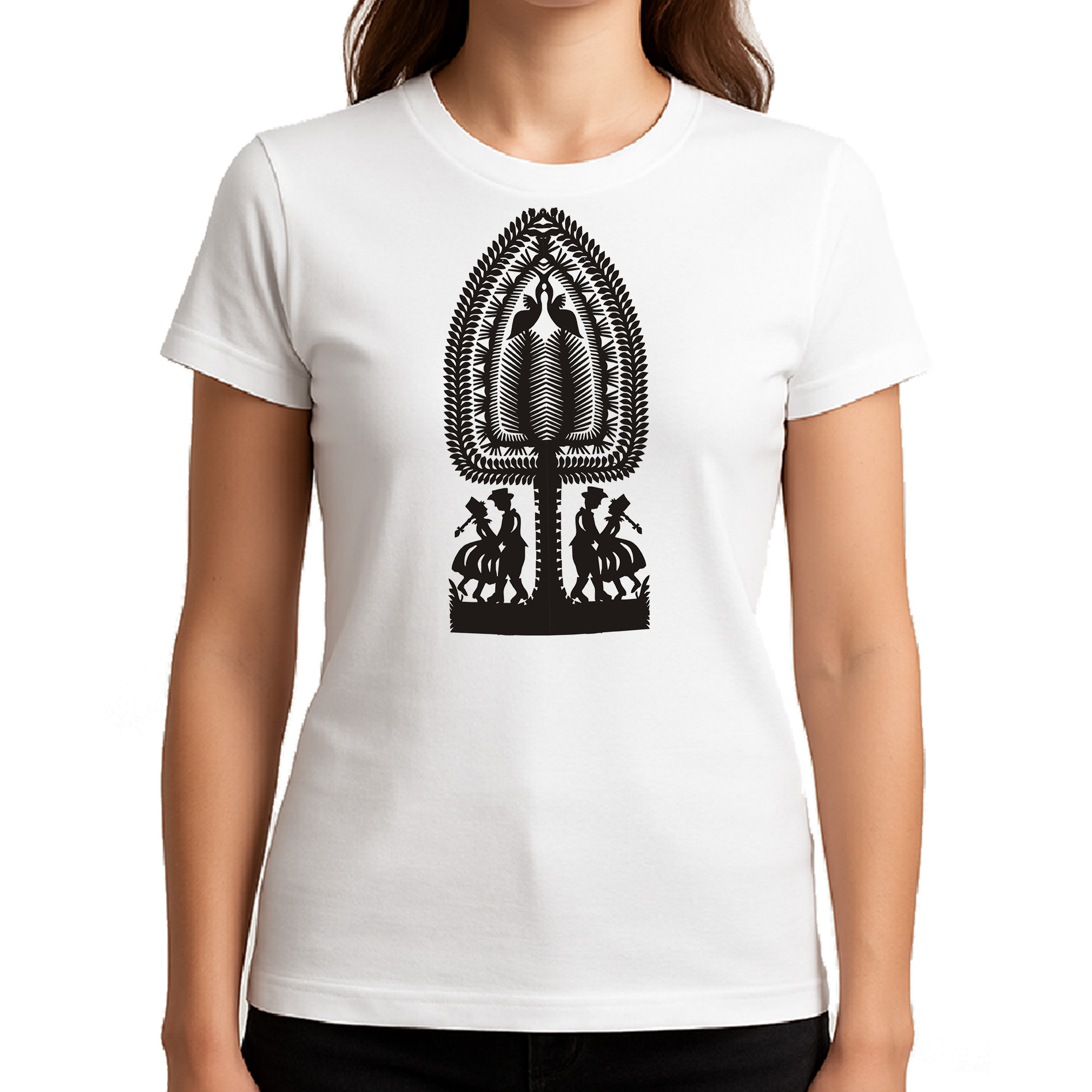 Koszulka damska Wycinanka Kurpiowska – Taniec i Natura
