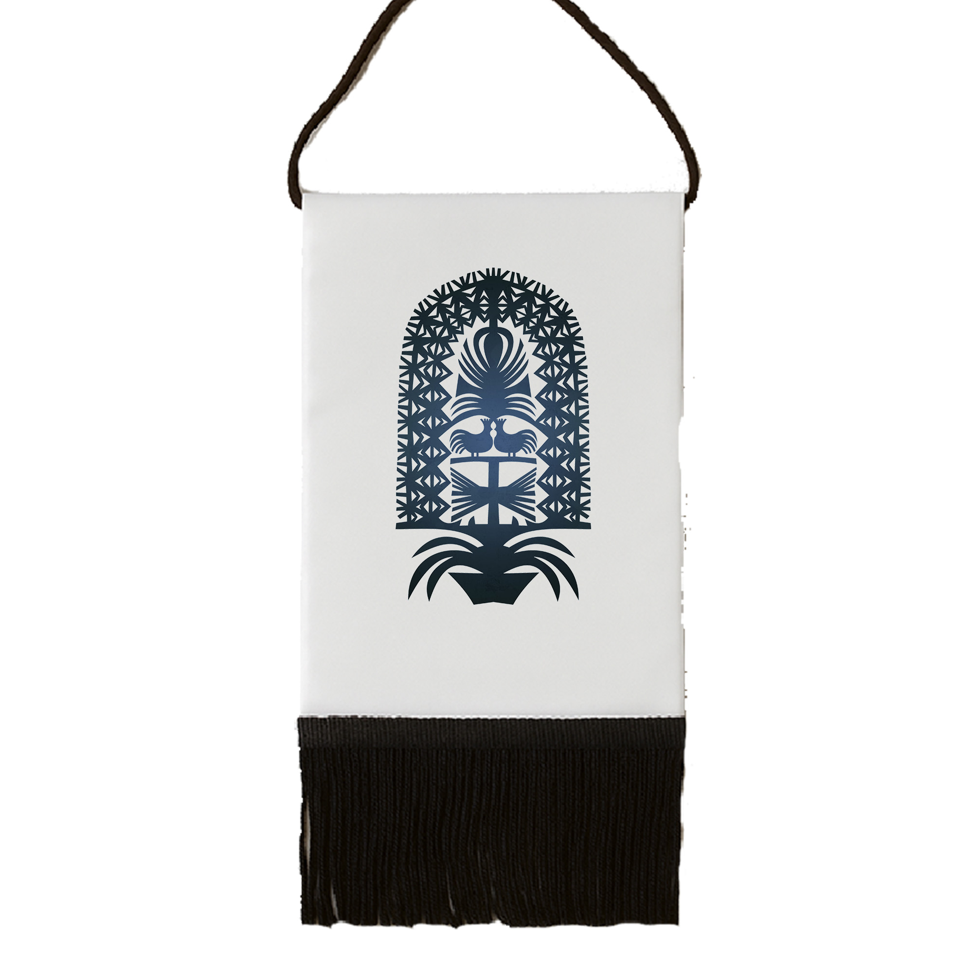 • frędzle i zawieszka wykonane z czarnego poliestrowego sznurka (wrażliwe na temperaturę – nie prasować)