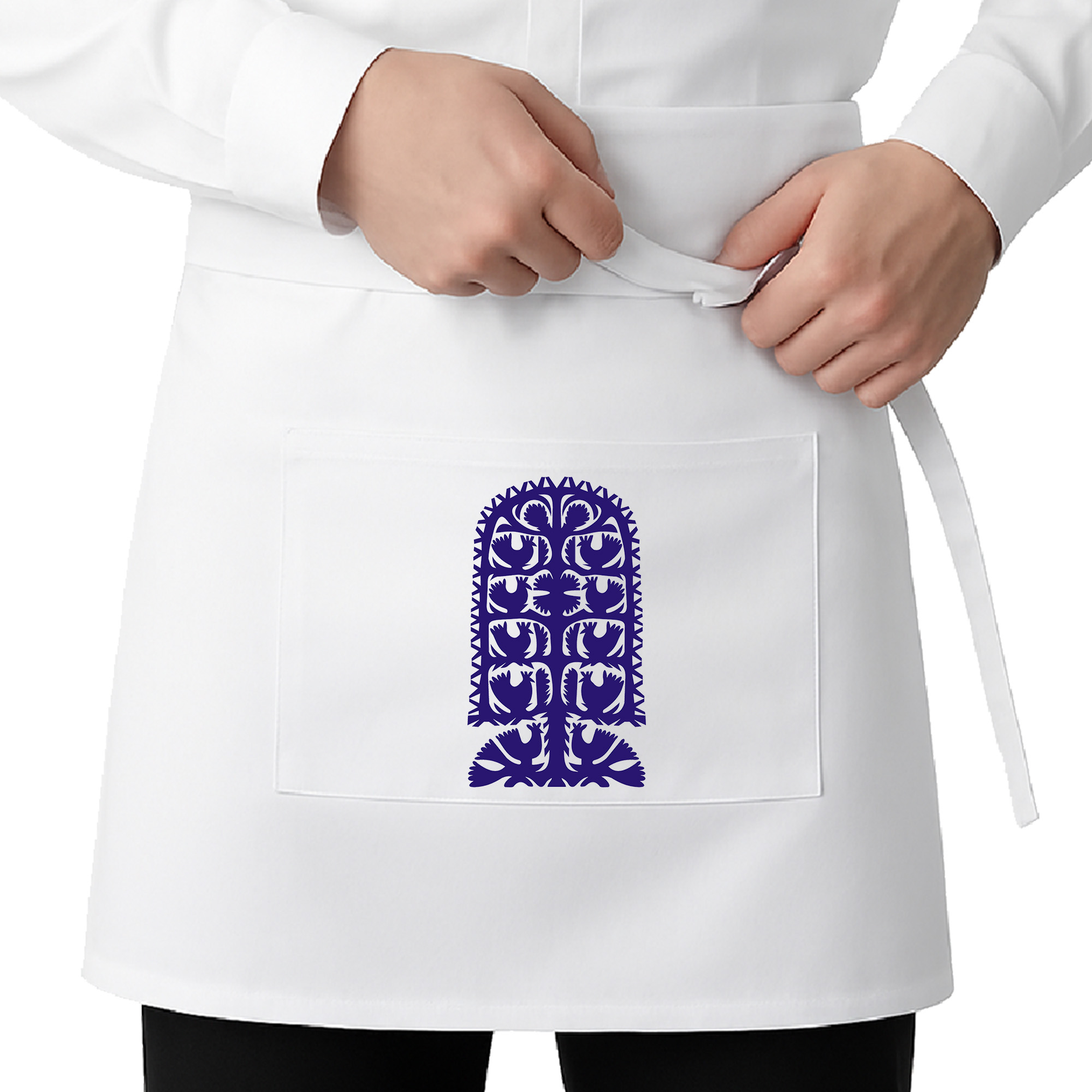 • Na środku zapaski znajduje się jedna prostokątna kieszeń